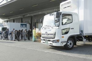 本日祈願祭が行われ、4t冷蔵車両が3台納車されました。